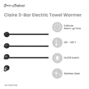 Swiss Madison Claire 3-Bar Electric Towel Warmer in Matte Black - SM-TW0901MB