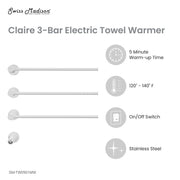 Swiss Madison Claire 3-Bar Electric Towel Warmer in Matte White - SM-TW0901MW