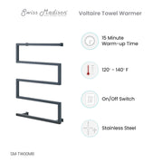 Embrace timeless elegance with the Voltaire collection, fusing classic charm with contemporary comfort. Indulge in the luxury of toasty towels with our sleek towel warmers adding a touch of comfort and sophistication to your bathroom experience. Offered in black with a matte finish.