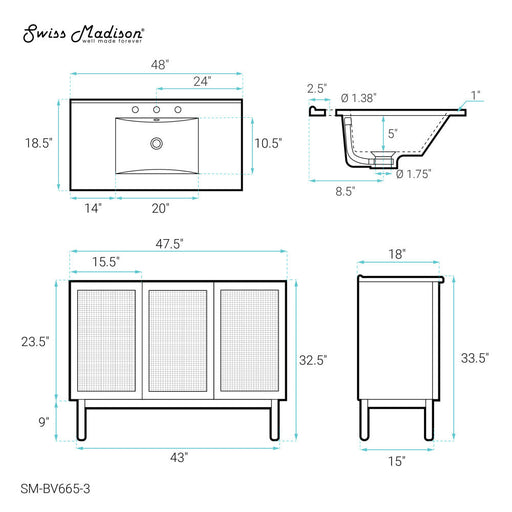 View full detailsSwiss Madison Classe 48 in. Brown Oak Bathroom Vanity With White, 3-Hole Ceramic Sink Top - SM-BV665-3