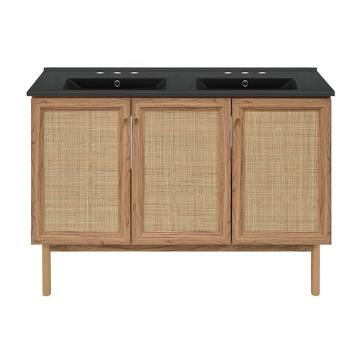 View full detailsSwiss Madison Classe 48 in. Brown Oak, Double Basin Bathroom Vanity With Black Ceramic Sink Top - SM-BV665DMB
