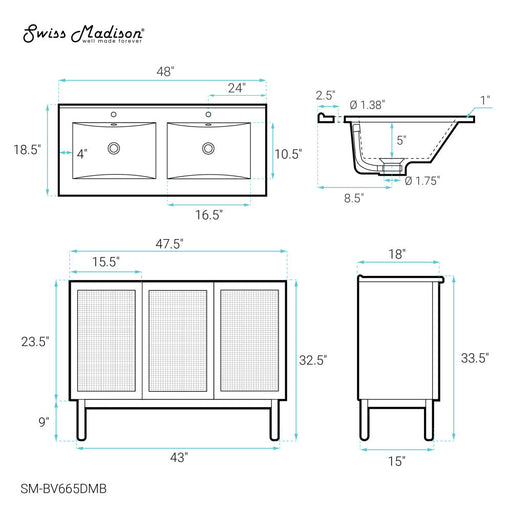 View full detailsSwiss Madison Classe 48 in. Brown Oak, Double Basin Bathroom Vanity With Black, 3-Hole Ceramic Sink Top - SM-BV665D-3MB
