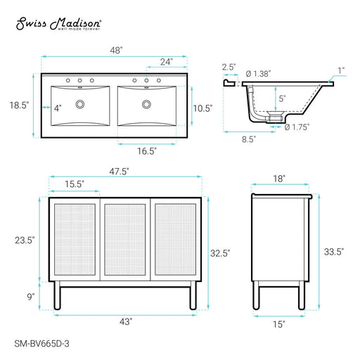 View full detailsSwiss Madison Classe 48 in. Brown Oak, Double Basin Bathroom Vanity With White Ceramic Sink Top - SM-BV665D