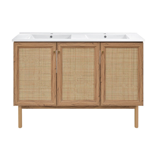 View full detailsSwiss Madison Classe 48 in. Brown Oak, Double Basin Bathroom Vanity With White, 3-Hole Ceramic Sink Top - SM-BV665D-3