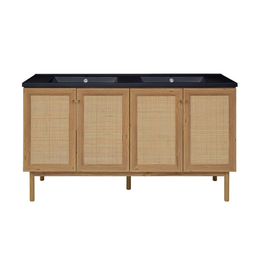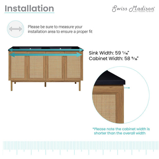 View full detailsSwiss Madison Classe 60 in. Brown Oak, Double Basin Bathroom Vanity With Black, 3-Hole Artificial Stone Sink Top - SM-BV666D-3MB
