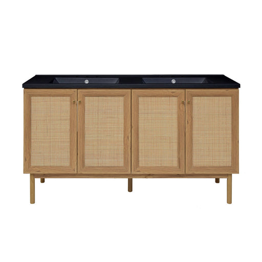 View full detailsSwiss Madison Classe 60 in. Brown Oak, Double Basin Bathroom Vanity With Black Artificial Stone Sink Top - SM-BV666DMB