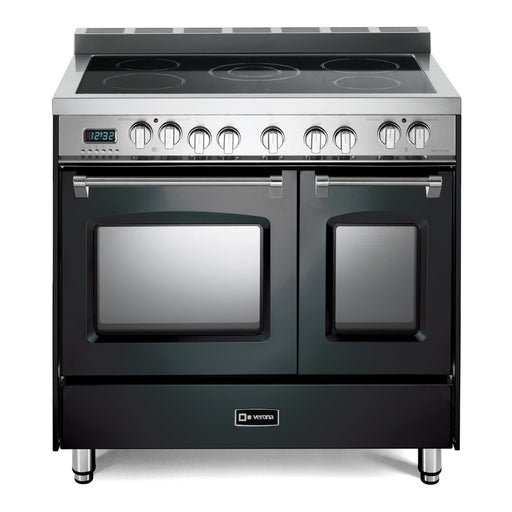 Verona 36 inch Prestige Series Freestanding Double Oven Electric Range with 5 Elements, 3.5 cu. ft. Total Oven Capacity and European Convection (Matte Black) VPFSEE365DE