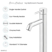 Swiss Madison Ivy Single Hole, Single-Handle, High Arc Bathroom Faucet in Chrome - SM-BF61C
