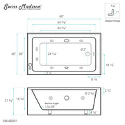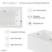 Swiss Madison Avancer 60" x 36" Right-Hand Drain Rectangular Alcove Whirlpool Bathtub with Apron - SM-AB591