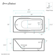 Swiss Madison Concorde 60" x 30" Right-Hand Drain Alcove Bathtub with Apron and Armrest - SM-AB0201GW