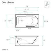 Swiss Madison Ivy 54'' x 30" Bathtub with Apron Left Hand Drain in White - SM-AB520
