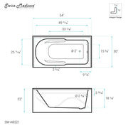 Swiss Madison Ivy 54'' x 30" Bathtub with Apron Right Hand Drain in White - SM-AB521