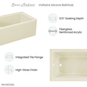 Embrace timeless elegance with the Voltaire collection, fusing classic charm with contemporary comfort. Elevate your bathroom into a serene sanctuary with our alcove bathtubs, offering both tranquility and sophistication in a comfortable setting. Offered in bisque with a glossy finish.