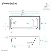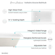 Swiss Madison Voltaire 54" x 30" Acrylic Glossy White, Alcove, Integral Left-Hand Drain, Bathtub - SM-AB562