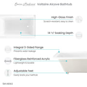 Swiss Madison Voltaire 54" x 30" Acrylic Glossy White, Alcove, Integral Right-Hand Drain, Bathtub - SM-AB563