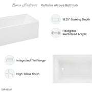 Embrace timeless elegance with the Voltaire collection, fusing classic charm with contemporary comfort. Elevate your bathroom into a serene sanctuary with our alcove bathtubs, offering both tranquility and sophistication in a comfortable setting. Offered in white with a glossy finish.