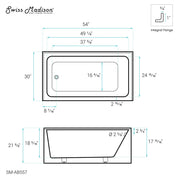 Swiss Madison Voltaire 54" x 30" Left-Hand Drain Alcove Bathtub with Apron - SM-AB557