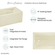 Embrace timeless elegance with the Voltaire collection, fusing classic charm with contemporary comfort. Elevate your bathroom into a serene sanctuary with our alcove bathtubs, offering both tranquility and sophistication in a comfortable setting. Offered in bisque with a glossy finish.