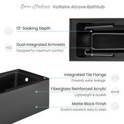 Embrace timeless elegance with the Voltaire collection, fusing classic charm with contemporary comfort. Elevate your bathroom into a serene sanctuary with our alcove bathtubs, offering both tranquility and sophistication in a comfortable setting. Offered in black with a matte finish.