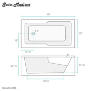 Swiss Madison Voltaire 60" x 30" Left-Hand Drain Alcove Bathtub with Apron in Matte Black - SM-AB541MB