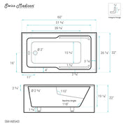 Swiss Madison Voltaire 60" x 32" Left-Hand Drain Alcove Bathtub with Apron and Armrest - SM-AB543