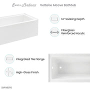 Swiss Madison Voltaire 60" x 32" Left-Hand Drain Alcove Bathtub with Apron - SM-AB595
