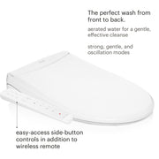 At just under 4 inches high, it has a seamless appearance compared to bulkier electronic bidet seats, yet still delivers the cleanliness and comfort you deserve.