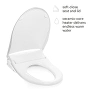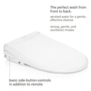 - Warm water wash, heated seat, and warm air dryer