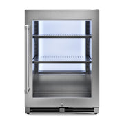With its sleek stainless-steel design and illuminating amber LED glow panel, this cooler creates the ultimate chill experience as you unwind with your favorite beverage. The double-glazed triple pane glass panel reduces transmission, so your drinks are perfectly chilled every time. And the zero clearance hinges ensure that the cooler seamlessly integrates into your chosen location without any clearance concerns, maximizing your space utilization.