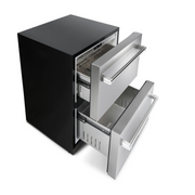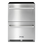This THOR Kitchen 24" Built-in Double Drawer Refrigerator, TRF24U in stainless steel will make a sleek addition to your kitchen, pantry or outdoor patio. The refrigerator is equipped with a large storage capacity, dual drawers, and features convection cooling system with anti-fingerprint surface.
