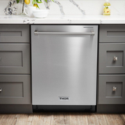 Clean dishes with ease with this powerful THOR Kitchen 24 in. Built-In Dishwasher in Stainless Steel (HDW2401SS). This unit utilizes the Smart Wash System to determine the type of cycle to use dependent on the soil level of the load. In addition, it contains a multiple filter systems for prime performance using less water and energy. Sleek style, easy installation, and comes with 6 wash cycles and 4 spray arms.
