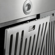 - Commercial-Style Baffle Filter. Large, commercial-style 430 grade stainless steel baffle filter maximizes air flow and grease filtering while the hood is in operation.