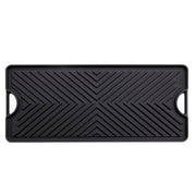 This Cast Iron Griddle Plate is reversible and versatile. Griddle on one side and a grill on the other. One side is perfect for bacon, eggs and pancakes. The other side is perfect steak, ribs and chicken.