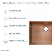 Swiss Madison Tourner 27 x 19 Stainless Steel, Single Basin, Undermount Kitchen Sink in Rose Gold - SM-KU709RG