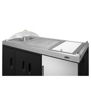 Ships fully assembled in two boxes. Just slide the refrigerator in and start serving!