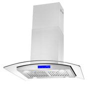 Cosmo 30" Stainless Steel Island Range Hood with Glass Canopy and Dishwasher Safe Permanent Filters COS-668ICS750