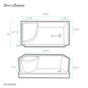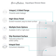 Swiss Madison Aquatique 60" x 32" Single Threshold Shower Base With Right Hand Drain and Integral Left Hand Seat in White - SM-SB538W