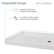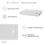 Swiss Madison Carre 48" x 36" Acrylic White, Single-Threshold, Right Drain, Shower Base - SM-SB542