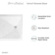Swiss Madison Terre P Series 36" x 36" Reversible Drain Shower Base - SM-SB551