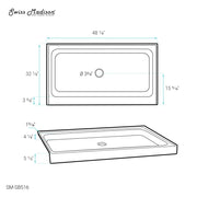 Swiss Madison Voltaire 48" x 32" Acrylic White, Single-Threshold, Center Drain, Shower Base - SM-SB516
