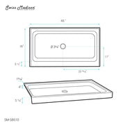 Swiss Madison Voltaire 48" x 36" Acrylic White, Single-Threshold, Center Drain, Shower Base - SM-SB510