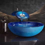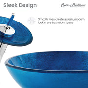 Swiss Madison Cascade 16.5 Glass Vessel Sink with Faucet, Ocean Blue - SM-VSF259