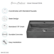 Swiss Madison Lisse 23.5" Rectangle Concrete Vessel Bathroom Sink in Dark Grey - SM-VSC103E