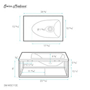 - Dimensions: 24"W x 15.5"D x 8.5"H