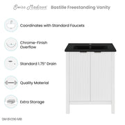 Swiss Madison Bastille 24 in. White Bathroom Vanity With Black Ceramic Sink Top - SM-BV290MB