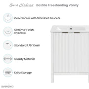 Swiss Madison Bastille 24 in. White Bathroom Vanity With White, 3-Hole Ceramic Sink Top - SM-BV290-3