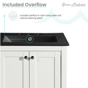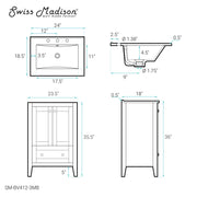 Swiss Madison Cannes 24 in. White Bathroom Vanity With Black, 3-Hole Ceramic Sink Top - SM-BV412-3MB