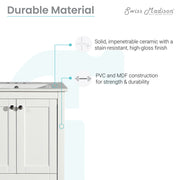 Swiss Madison Cannes 24 in. White Bathroom Vanity With White, 3-Hole Ceramic Sink Top - SM-BV412-3