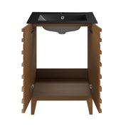 Swiss Madison Cascade 24 in. Brown Oak Bathroom Vanity With Black Ceramic Sink Top - SM-BV470BKMB