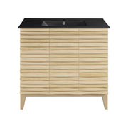 Swiss Madison Cascade 36 in. Natural oak Bathroom Vanity With Black Ceramic Sink Top - SM-BV471MB